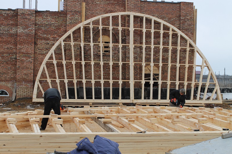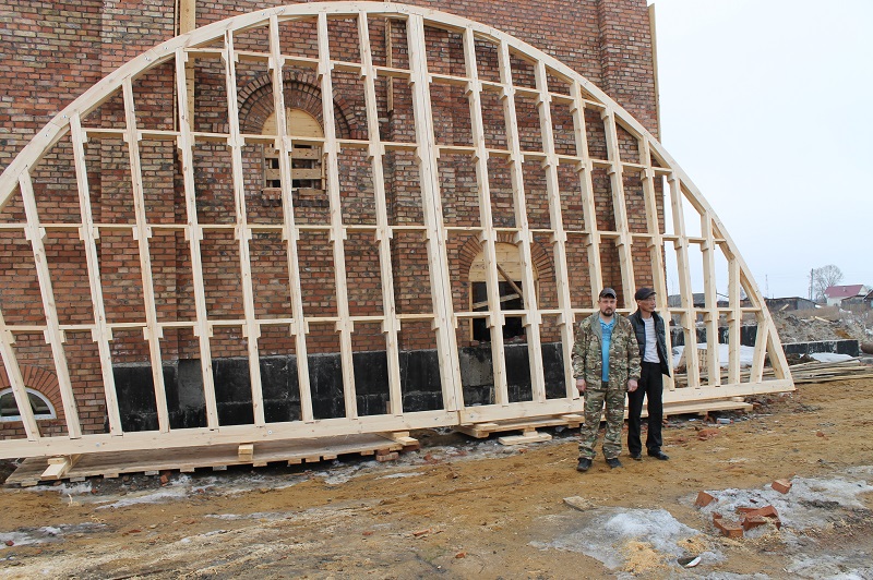 29 марта 2016 года. Идёт подготовка к возведению свода Свято-Троицкого Храма в селе Казачинское