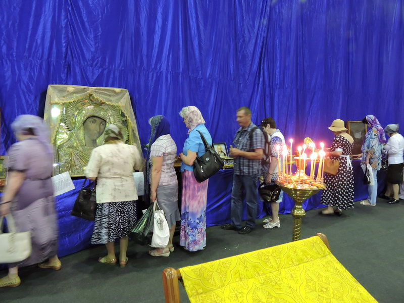 Настоятель Свято-Троицкого Храма о. Виктор Зимин и группа прихожан села Казачинское приняли участие в выставке "Сибирь православная" в Красноярске. Они рассказали об истории Храма, о его главной реликвии - иконе Казанской Божьей Матери, и о постройке нового здания Храма.