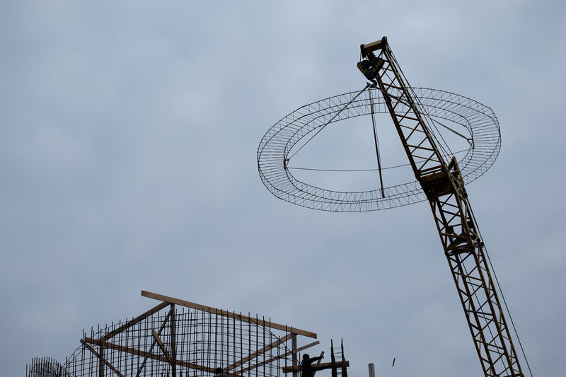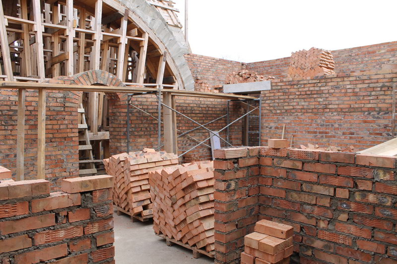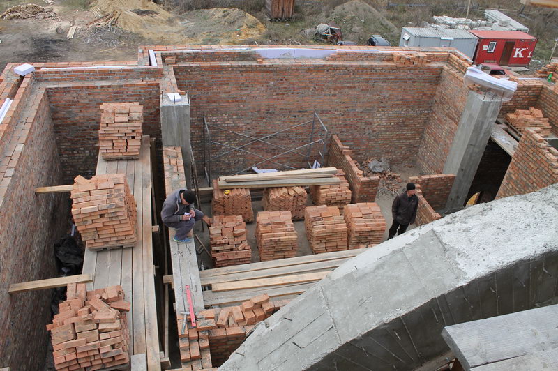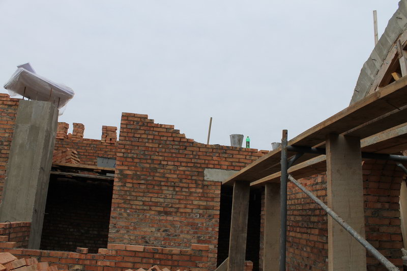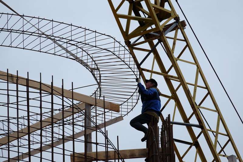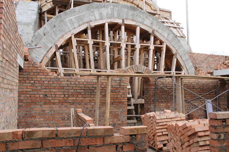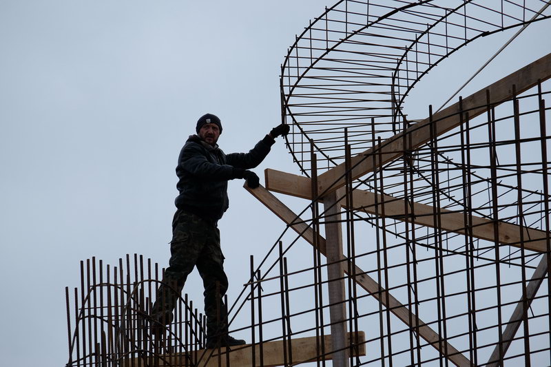 Смонтировано кольцо основания центрального купола Свято-Троицкого Храма в селе Казачинское. Идет кладка стен второго этажа.