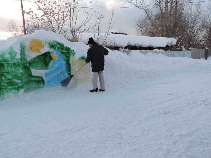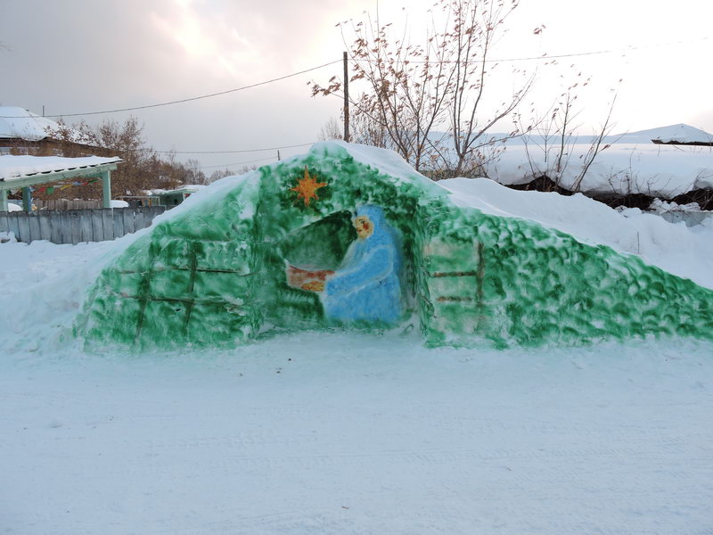 Прихожане Свято-Троицкого храма в селе Казачинское построили к Рождеству Христову для детей горку и "вертеп ", где родился Богомладенец.