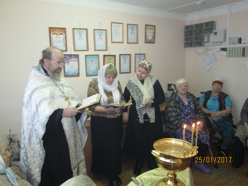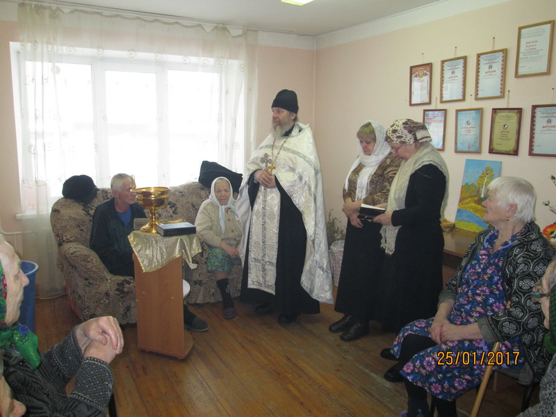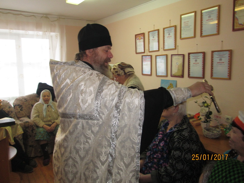 Настоятель Свято-Троицкого храма иерей Виктор Зимин посетил пансионат для инвалидов «Прибрежный». Во время посещения о. Виктор совершил водосвятный молебен. Со своими прихожанами помолился о всех находящихся в пансионате, а их более 80 человек инвалидов и просто почтенных людей в возрасте. А затем обошел все жилые помещения в которых находятся почтенные люди, окропил их святой водой и поздравил всех со светлыми праздниками которые проходили в январе, начиная от Рождества Господа Нашего Иисуса Христа до Его Крещения.