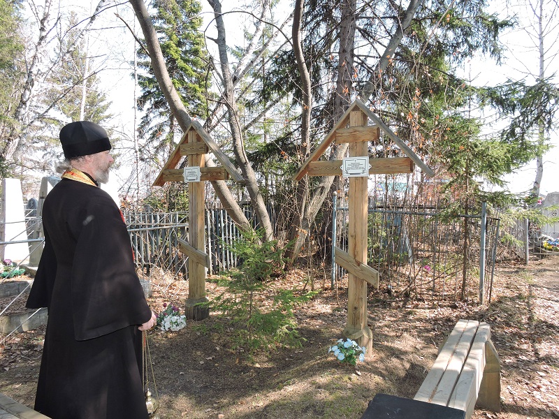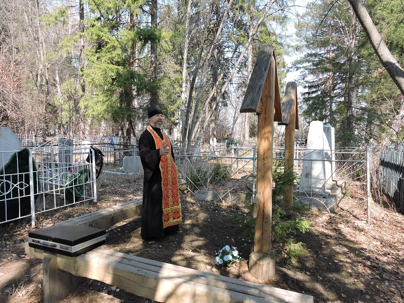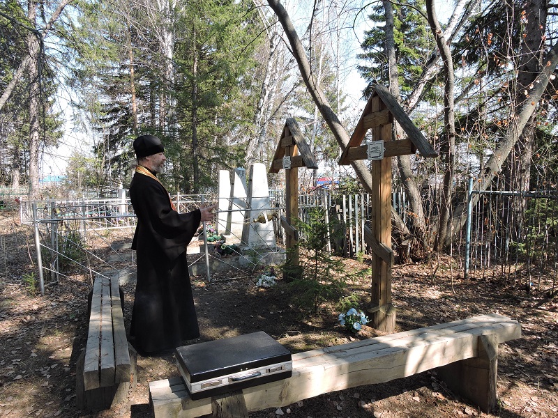 Радоница, поминовение усопших. Настоятель Свято-Троицкого Храма в селе Казачинское отец Виктор отслужил литию на кладбище у могилок монахини Магдалине и инокини Ксении