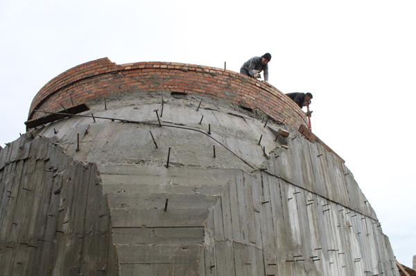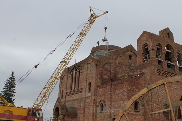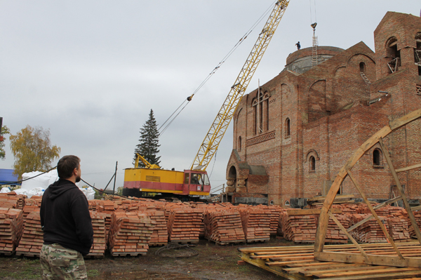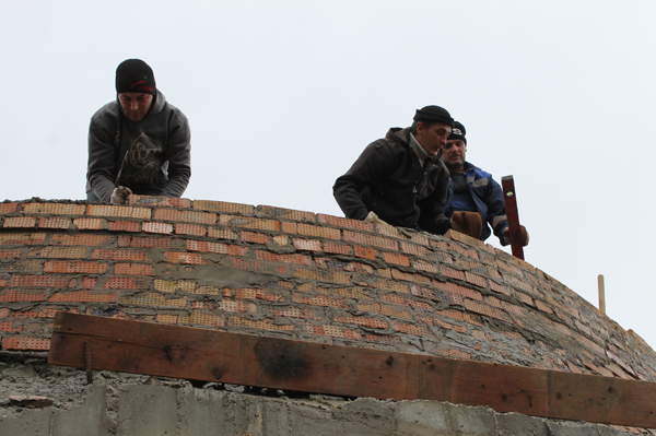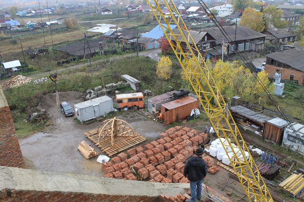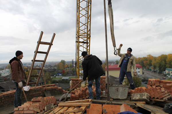Строительство Свято-Троицкого Храма в селе Казачинское продолжается, начата кладка кирпича третьего неба.