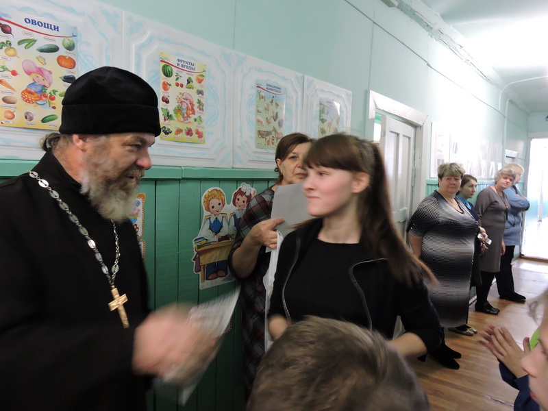 Настоятель Свято-Троицкого храма с. Казачинское иерей Виктор Зимин посетил КГБОУ «Казачинская школа», где вручил преподавателям и ученикам школы сертификаты и ценные подарки за подготовку и принятие участия в конкурсе детского творчества «Красота Божьего мира», который проходил в Енисейской епархии по благословению епископа Никанора.