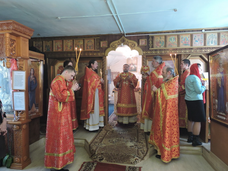 Его Преосвященству сослужили секретарь епархии, настоятель Крестовоздвиженского кафедрального собора г. Лесосибирска иеромонах Аполлинарий (Обухов), благочинный Лесосибирского округа протоиерей Андрей Чугунов, настоятель храма иерей Виктор Зимин.