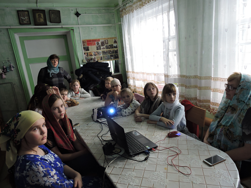 В воскресной школе при Свято-Троицком храме села Казачинское проходят занятия по предмету "Основы православной культуры". Урок ведет учитель сестра Маркова Надежда Васильевна.