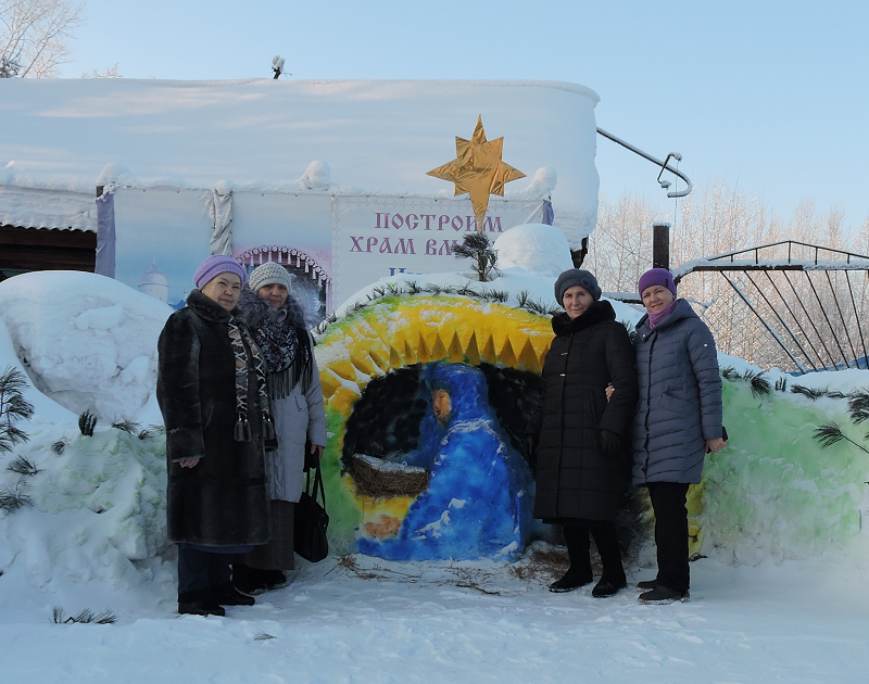 Прихожане Свято-Троицкого храма в селе Казачинское построили к Рождеству Христову для детей горку и "вертеп ", где родился Богомладенец