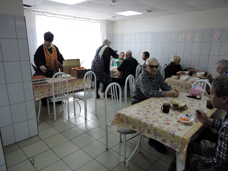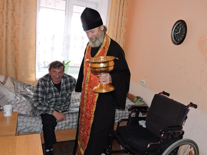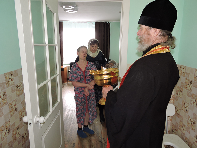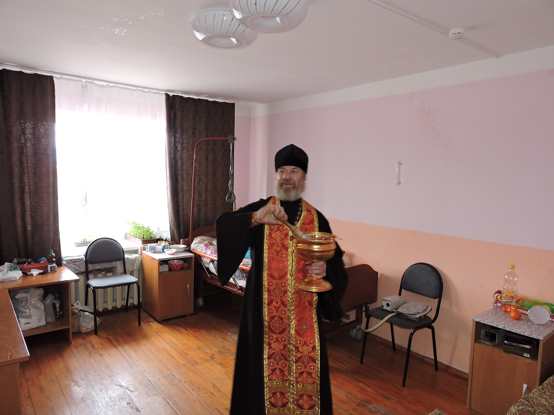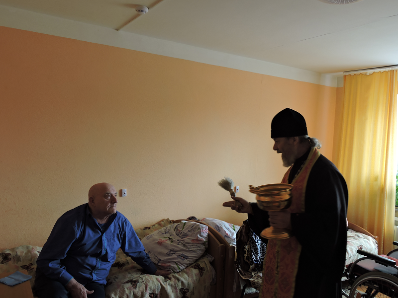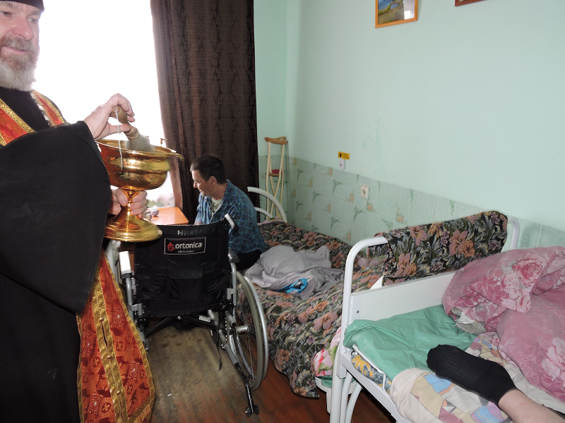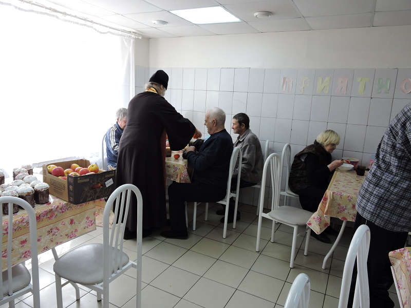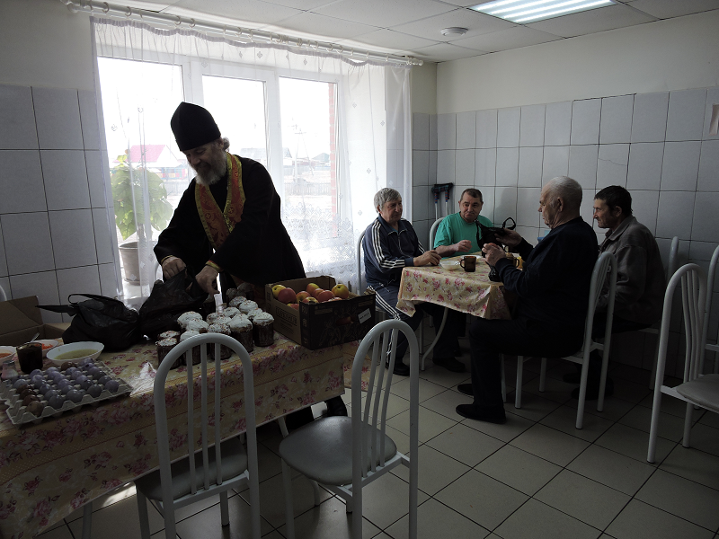 В день Христова Воскресения настоятель Свято-Троицкого храма иерей Виктор Зимин посетил пансионат для инвалидов «Прибрежный»