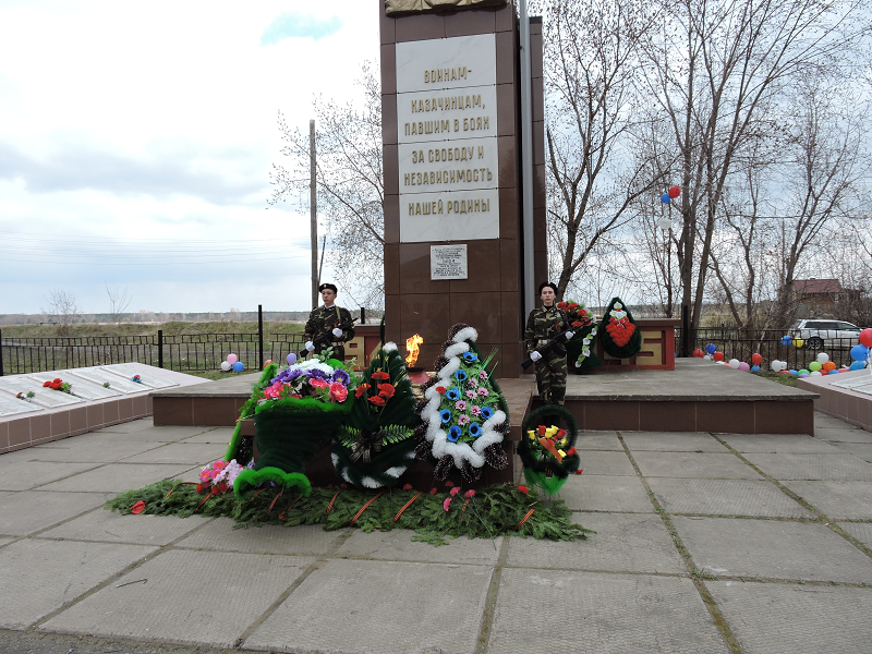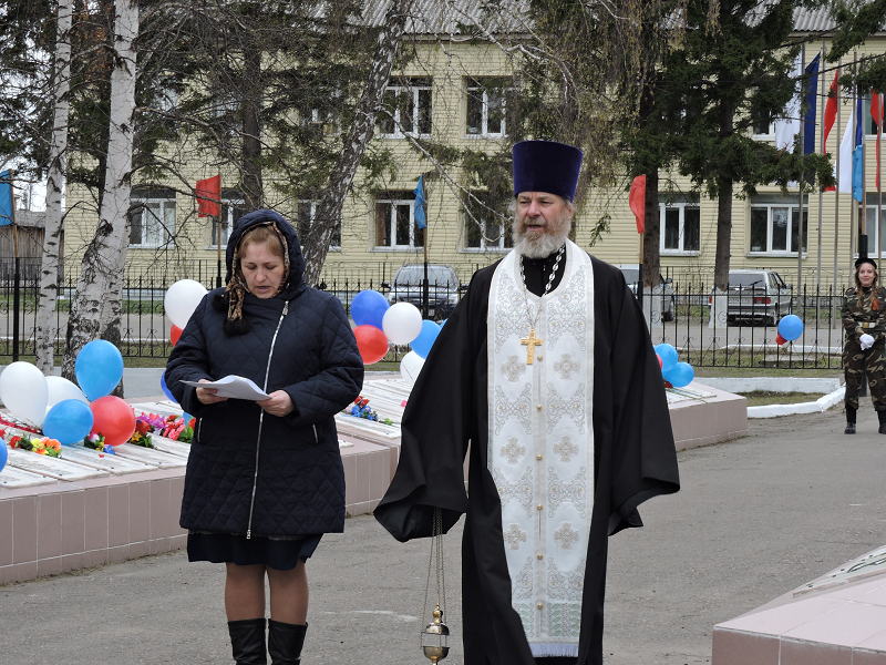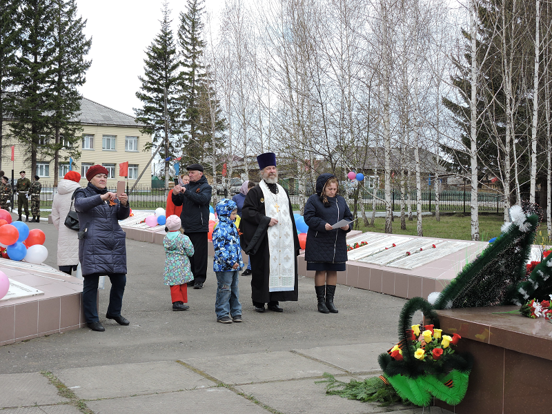 В день Великой Победы настоятель Свято-Троицкого храма отец Виктор Зимин с клиросом отслужил заупокояную литию на месте мемориала воинам Казачинским, отдавшим свою жизнь в Великой Отечественной войне.