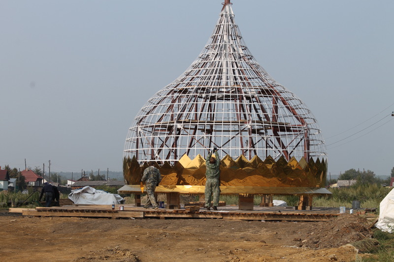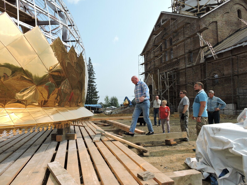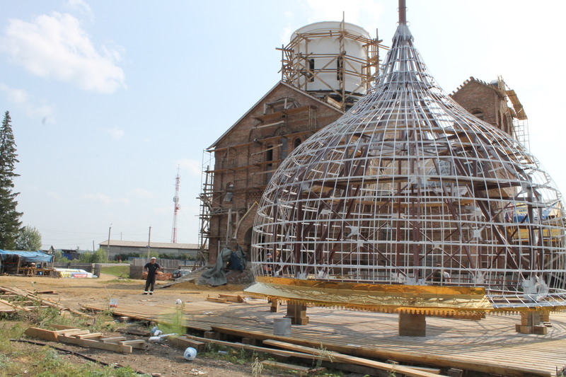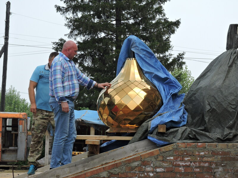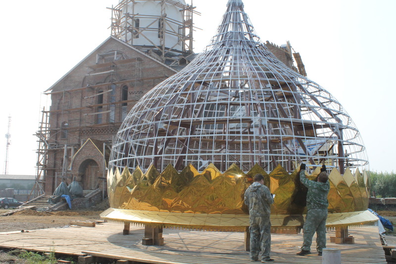 Строительство храма продолжается. Идет работа по оформлению куполов