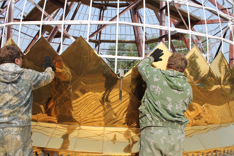 На сегодняшний день идет работа по оформлению куполов.