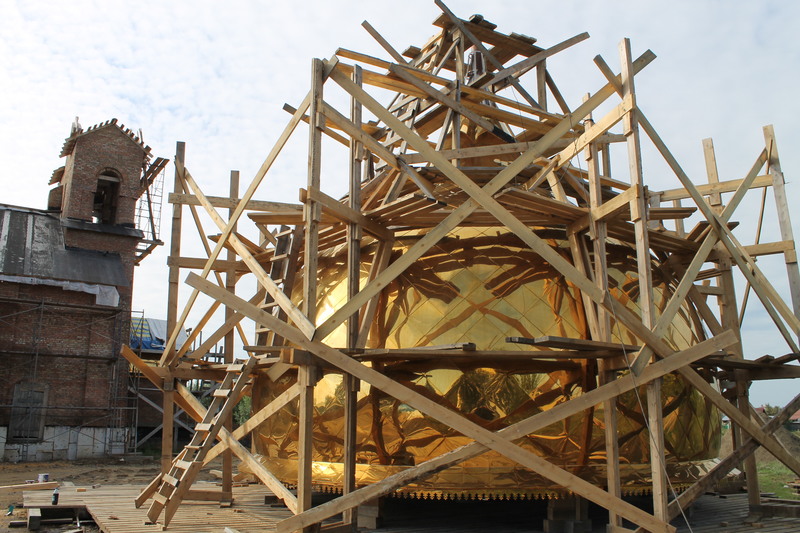 Строительство храма продолжается Продолжается оформление купола строящегося Свято-Троицкого храма в селе Казачинское к списку новостей