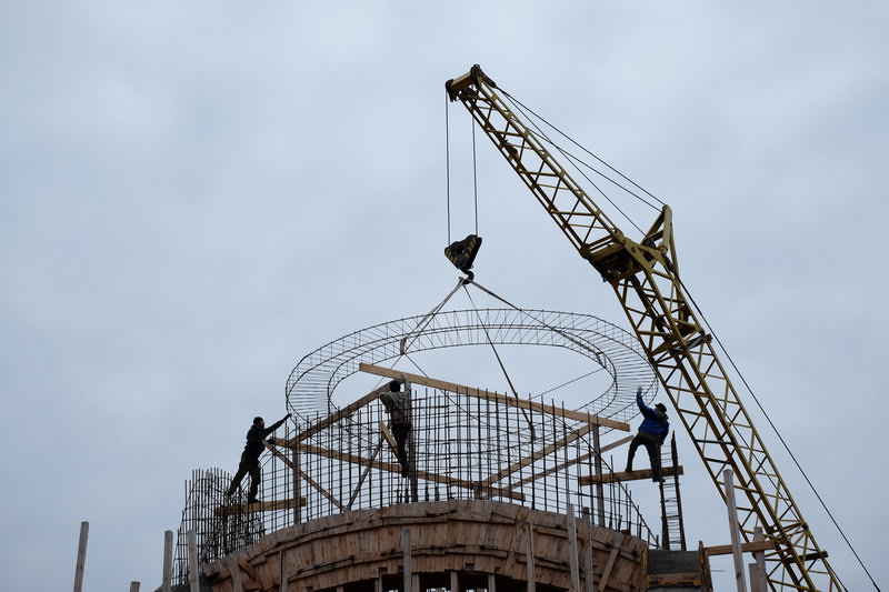 (эта подборка фотографий показывает весь путь строительства от первой вбитой сваи до установки главного купола и креста)