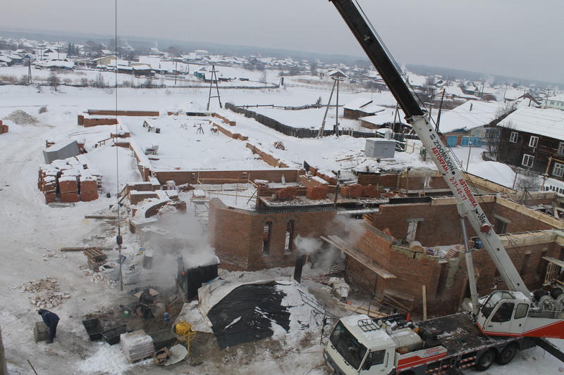 Строительство храма продолжается Продолжается строительство Свято-Троицкого храма в селе Казачинское, началось перекрытия первого этажа. к списку новостей