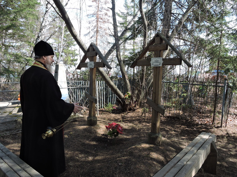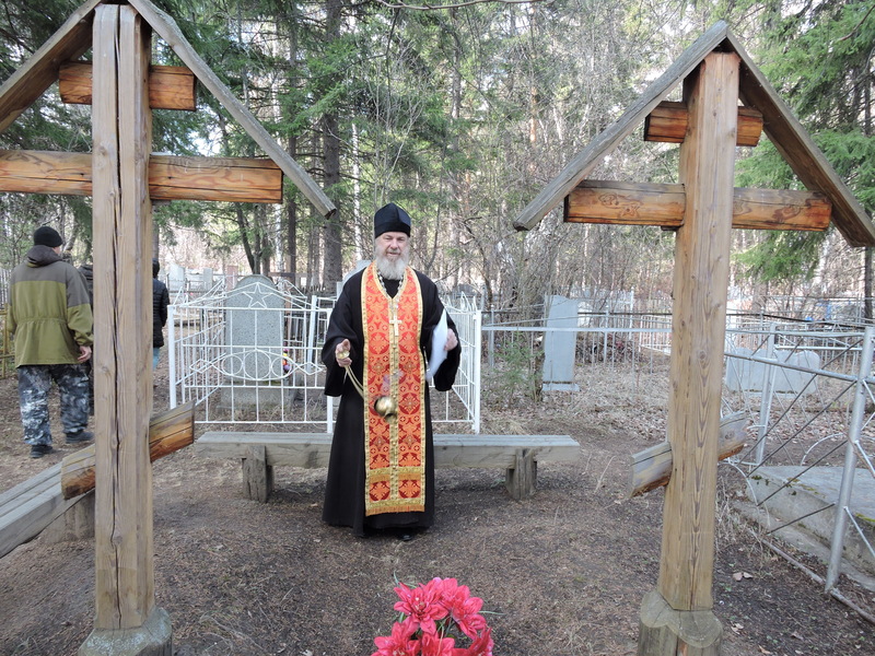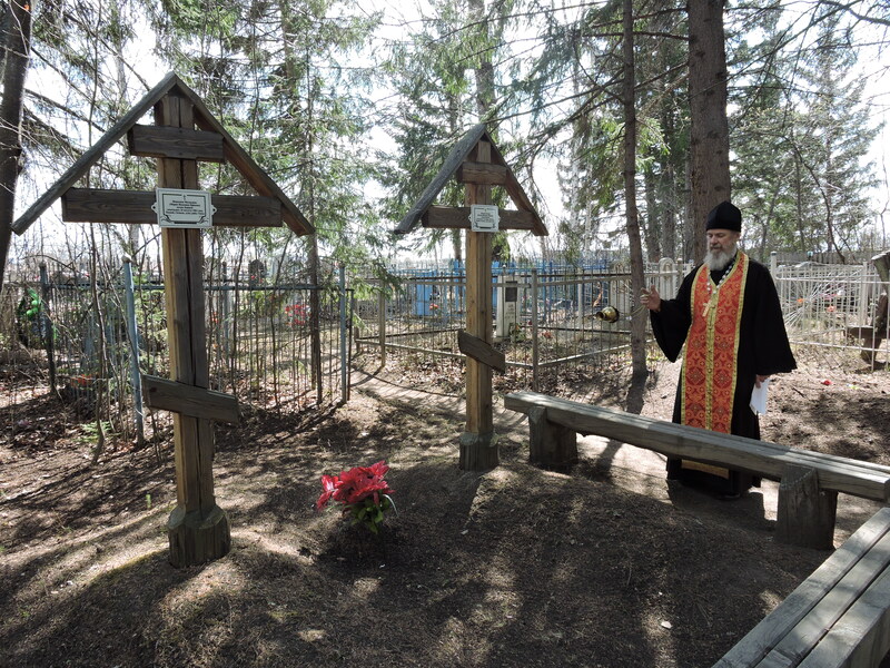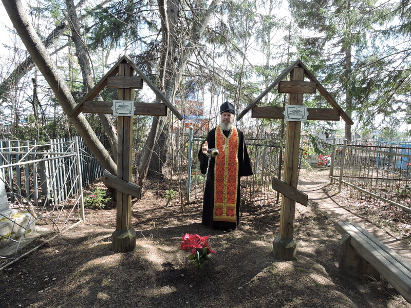 На родительский день «Радоница» настоятель Свято-Троицкого храма иерей Виктор Зимин совершил панихиду о усопших в кладбищенской часовне и литию по усопшим монахине Магдалине и инокине Ксении сосланных в лютую годину в Сибирь из женского монастыря Орловской области.