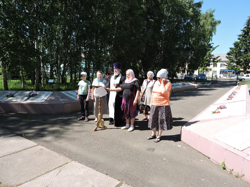 Настоятель Свято-Троицкого храма иерей Виктор Зимин с прихожанами отслужили молебен на мемориале воинам Казачинского района погибшим в Великой Отечественной войне. После молебна сестры храма рассказали о помощи Божией Матери и Заступницы Русским воинам во время Великой Отечественной войны.