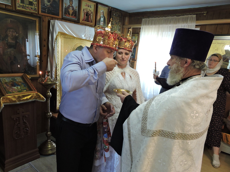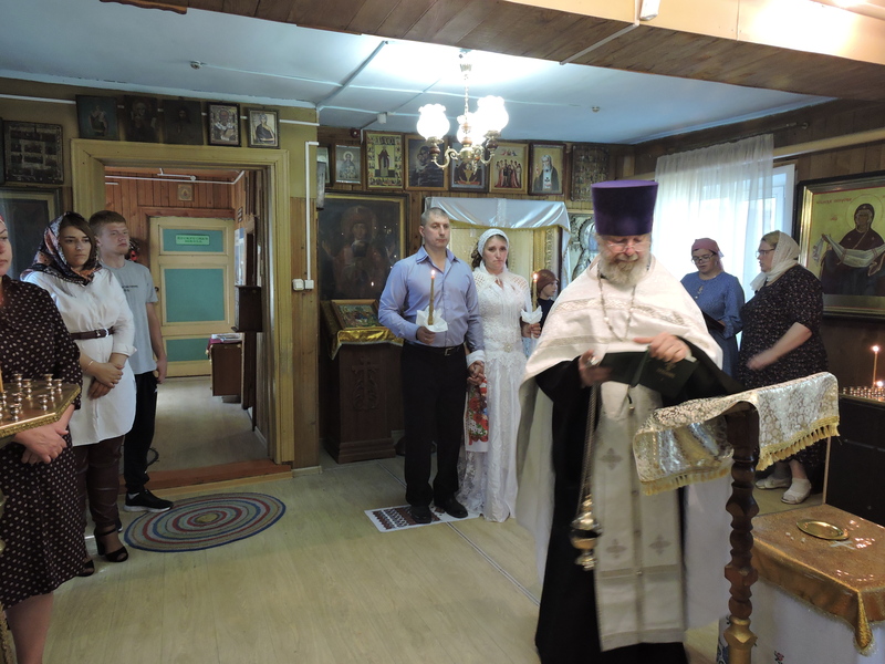 В Свято-Троицком храме села Казачинское после окончания литургии прошло таинство венчания прихожан Дмитрия и Ольги Лобовых. Члены прихода присутствовали на церемонии и с радостью поздравили венчающихся. Еще одна семья сподобилась жить по всем заповедям, которые установил Бог для человека, находящегося еще в раю.