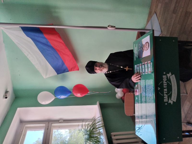 Тема «Духовно нравственное состояние и воспитание народа и детей, в соответствии с традициями и культурой». В школе имеется парта героя Храменкова Вадима Валерьевича, погибшего при выполнении служебного долга на Украине 07.04.2022г., посмертно награжденного орденом мужества.