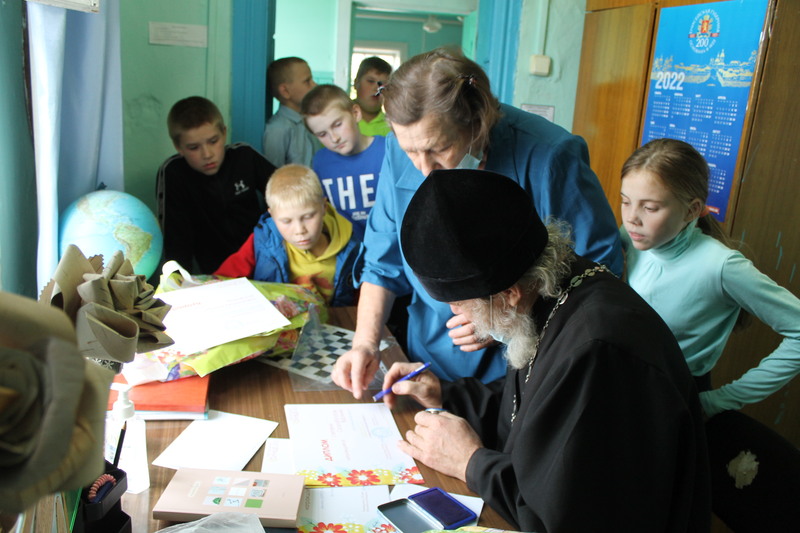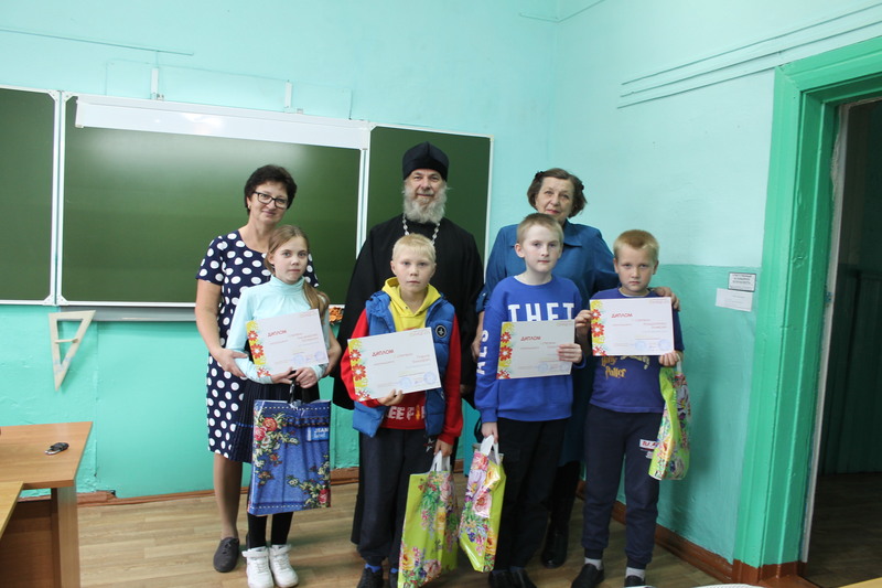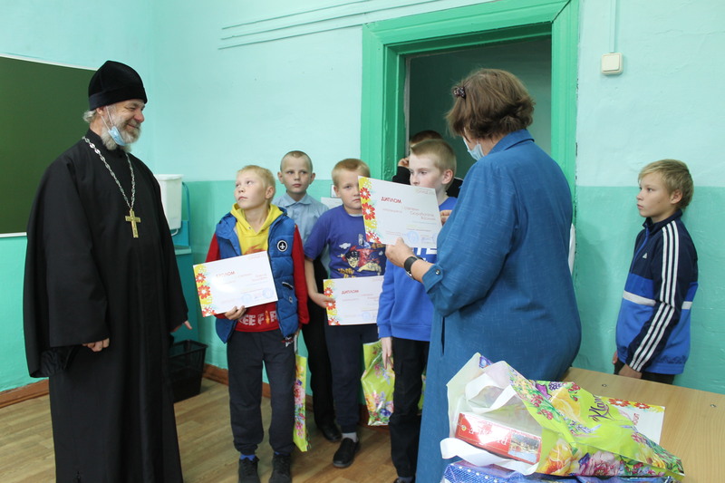 В праздник День рождения Пресвятой Богородицы в Свято-Троицком храме иерей отец Виктор вручил грамоты, дипломы и подарки за участие международном конкурсе детского творчества «Пасхальное солнце» учащимся КГБОУ «Казачинская школа».