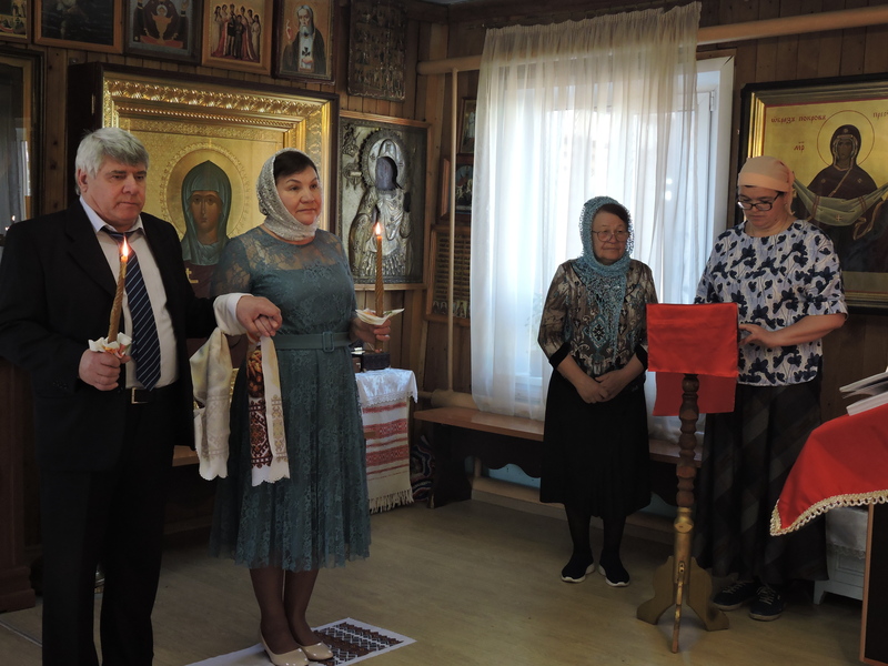 В Свято-Троицком храме села Казачинское после окончания литургии прошло таинство венчания прихожан Валерия и Ирины. Члены прихода присутствовали на церемонии и с радостью поздравили венчающихся. Еще одна семья сподобилась жить по всем заповедям, которые установил Бог для человека, находящегося еще в раю.