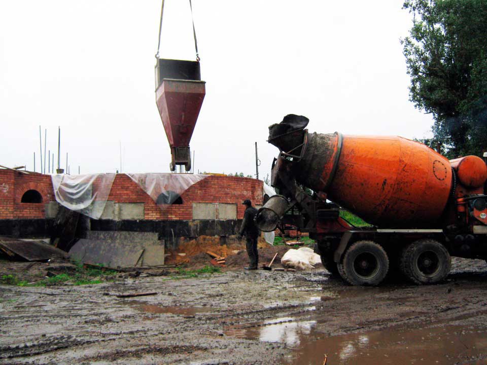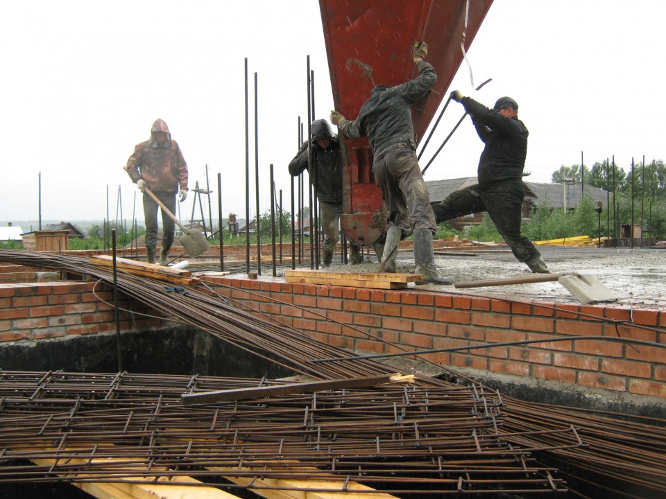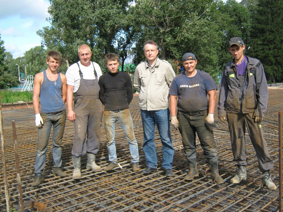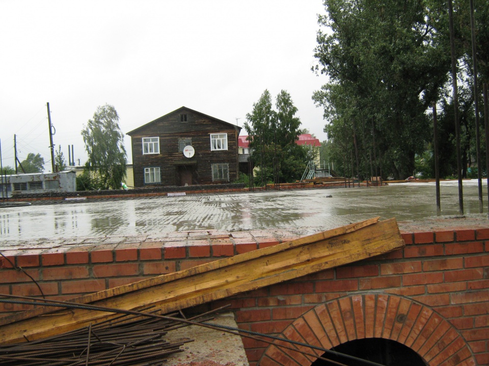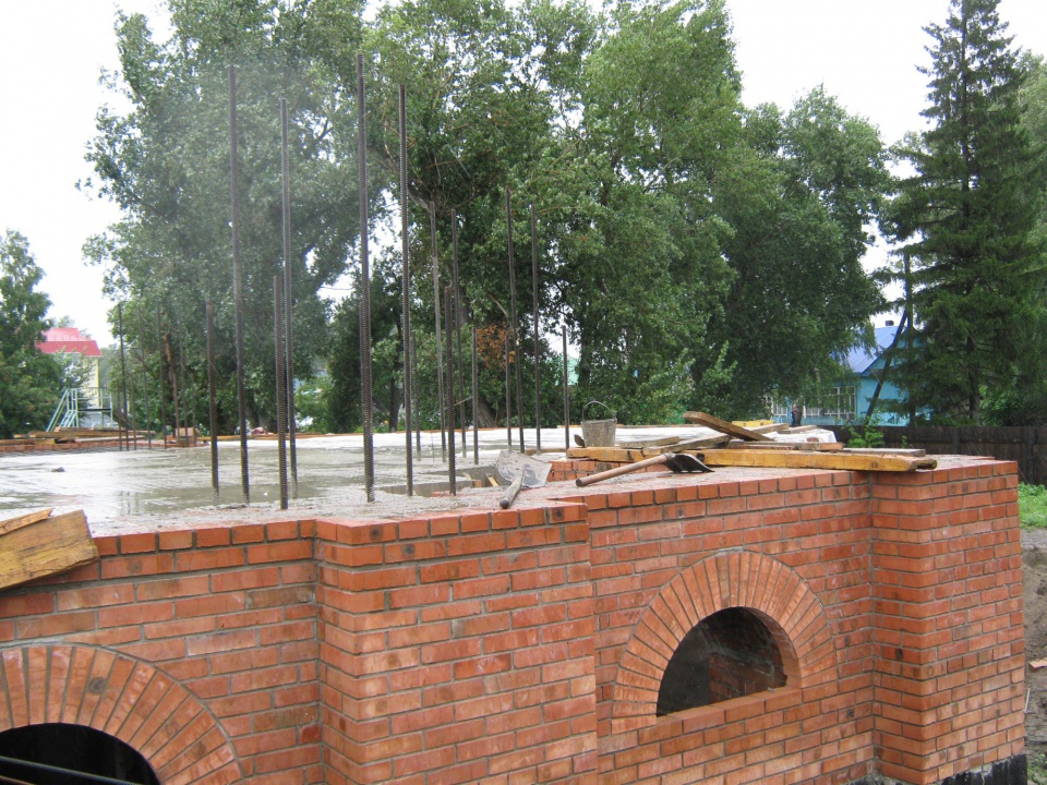 Прошел ровно год как была забита первая из 161 сваи. И весь этот год стремление у всех исполнителей было одно – как можно быстрее выйти на перекрытие над цокольным этажом. Удаленность от г. Красноярска, отсутствие какой – либо строительной базы в районном центре очень усложняли строительные работы. Все материалы и строительную технику необходимо было везти за 200 км. А именно 480 фундаментных блоков, больше 100 кубометров бетонной смеси, 53 000 кирпича, цемент и строительный песок. Результатом первого года работы стало монолитное перекрытие над подземным этажом из тяжелого бетона в количестве 70 кубометров и арматуры в количестве 14 тонн.