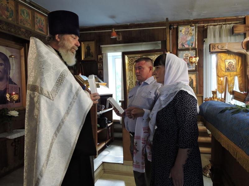 В Свято-Троицком храме села Казачинское после окончания литургии прошло таинство венчания прихожан Александра и Ники. Члены прихода присутствовали на церемонии и с радостью поздравили венчающихся. Еще одна семья сподобилась жить по всем заповедям, которые установил Бог для человека, находящегося еще в раю.