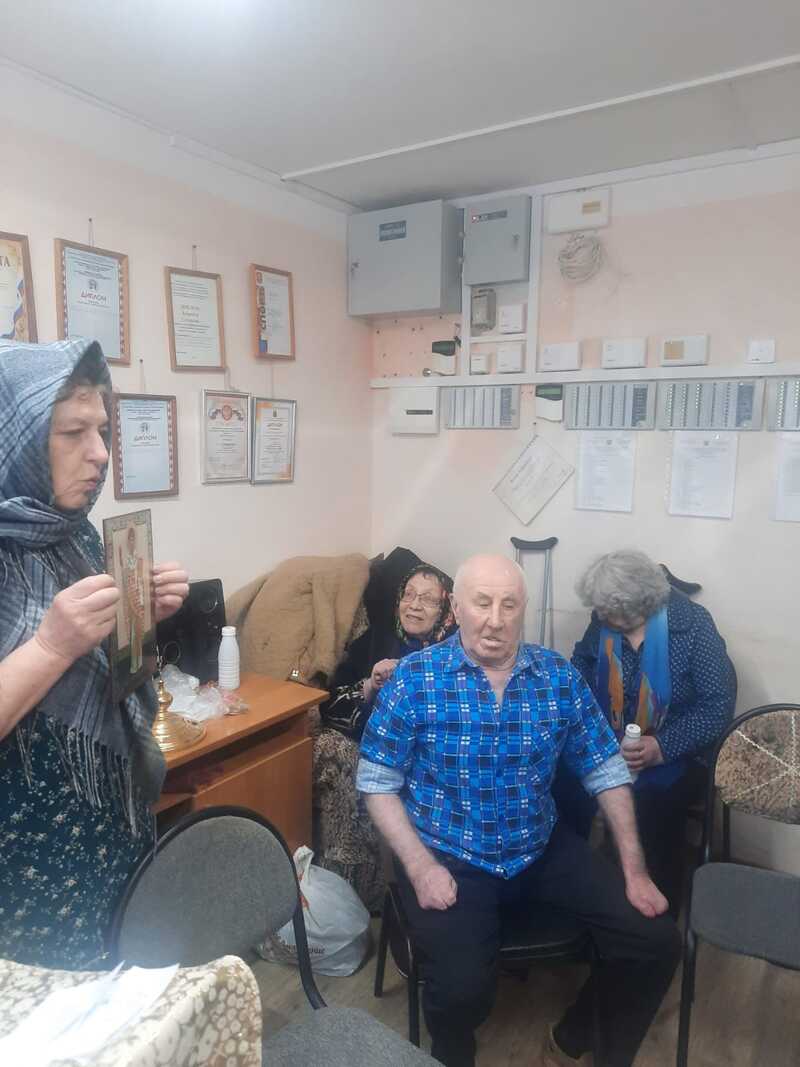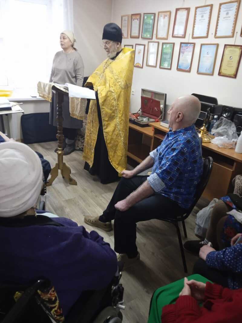 Отслужен водосвятный молебен, проведено окропление водой жилых помещений и всего персонала учреждения. Проведено два цикла бесед с разной категорией слушателей. Нуждающиеся одарены крестиками и освещённым маслом. Ознакомлены с различного вида иконами святого Спиридона.
