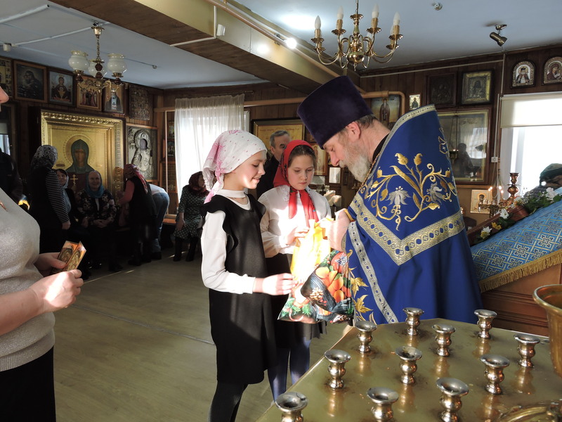 Празднование Сретения Господня традиционно сопровождается торжественной литургией. Настоятель Свято-Троицкого храма иерей Виктор Зимин перед литургией освятил свечи читал молитвы, окроплял их святой водой. После чего по традиции, раздал освященные свечи прихожанам, поздравил каждого прихожанина с праздником. На клиросе во время литургии кроме взрослых пели и дети, как сказал патриарх Кирилл, это праздник молодежи.