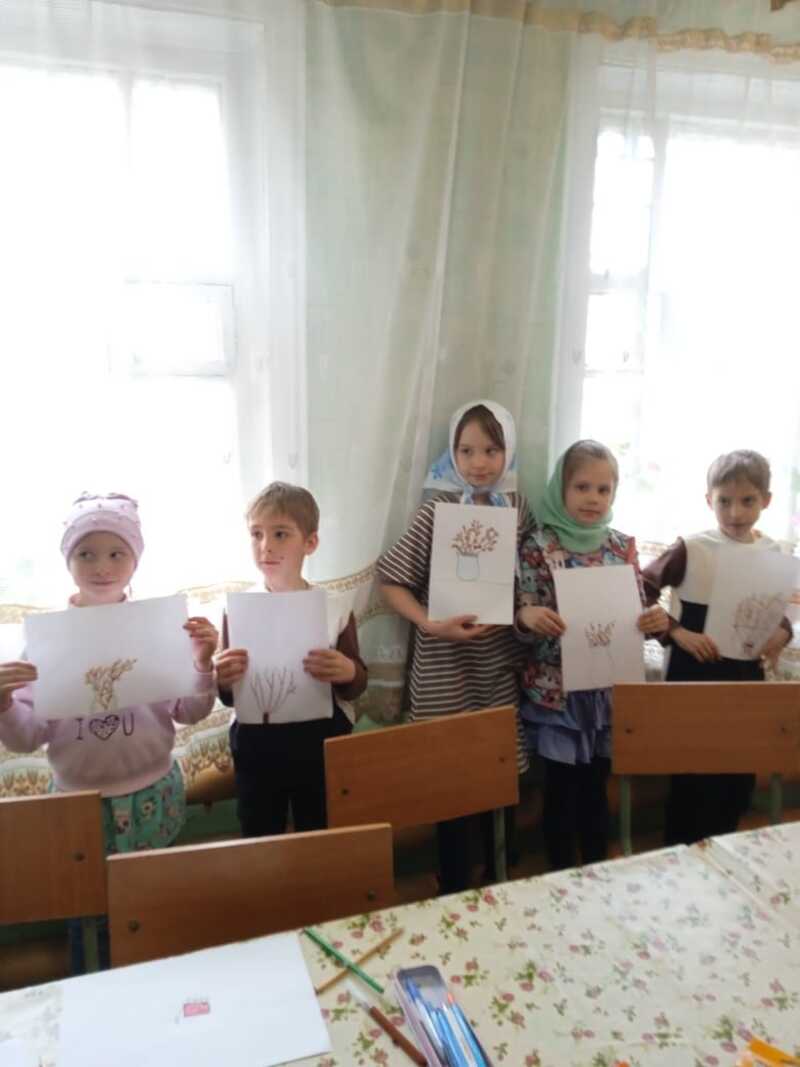 В честь праздника «Вербное воскресенье» проведён конкурс на рисование вербы среди детей воскресной школы (младшее звено)