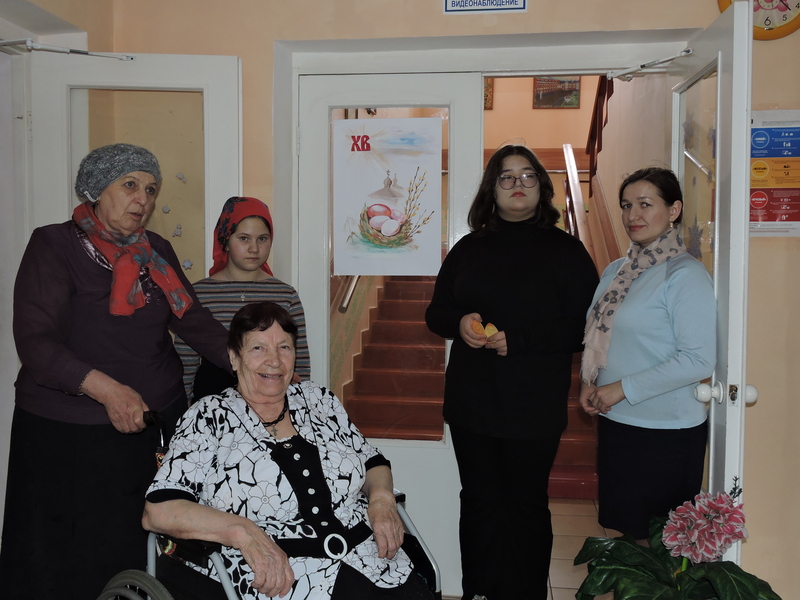 Прихожане прихода Свято-Троицкого храма Ростовых Л. И. и Маковская И.Л. с детьми из воскресной школы посетили пансионат «Прибрежный», где поздравили жителей с праздником Воскресения Христова, а также вручили пасхальные подарки.