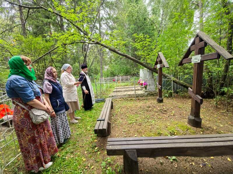 Настоятель Свято-Троицкого храма села Казачинское иерей Виктор вместе с прихожанами отслужили литию на могилах монахини Магдалины и инокини Ксении (Ефановых).