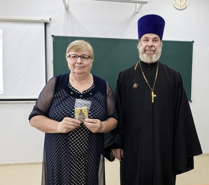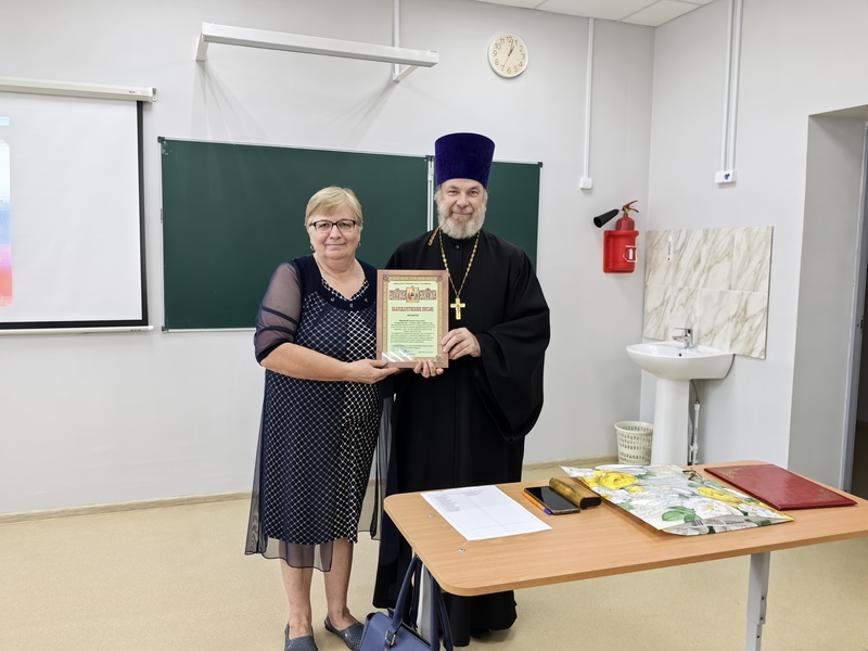 В Казачинской муниципальной общеобразовательной школы состоялся педагогический совет, на котором присутствовал настоятель Свято-Троицкого храма села Казачинское иерей Виктор Зимин. Во вступительном слове священник поздравил учителей школы с началом нового учебного года, призвал Бога и Богородицу в помощь учителям. Наградил преподавателя модуля Основ Православной Культуру Маркову Н.В. Благодарственной грамотой и вручил ей подарки и икону учителя церкви св. Иоанна Златоуста за ее многолетний труд.