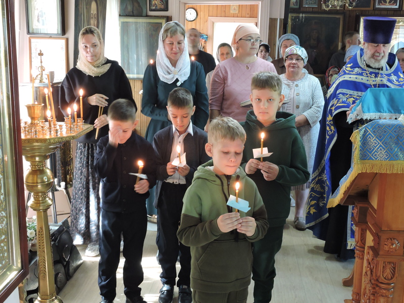 В свято-Троицком храме села Казачинское по благословению епископа Енисейского Игнатия провели после литургии молебен перед началом учебного года.