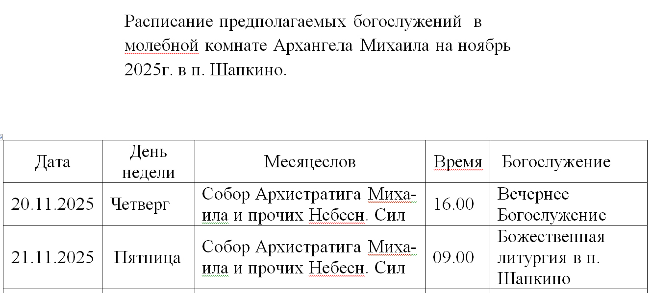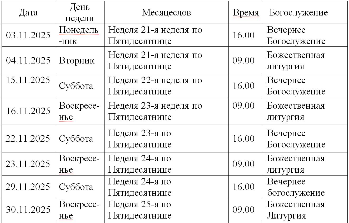 Расписание богослужений